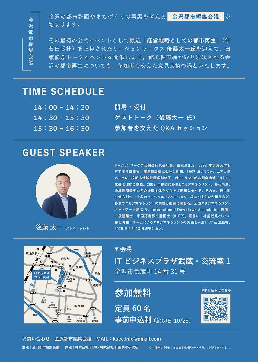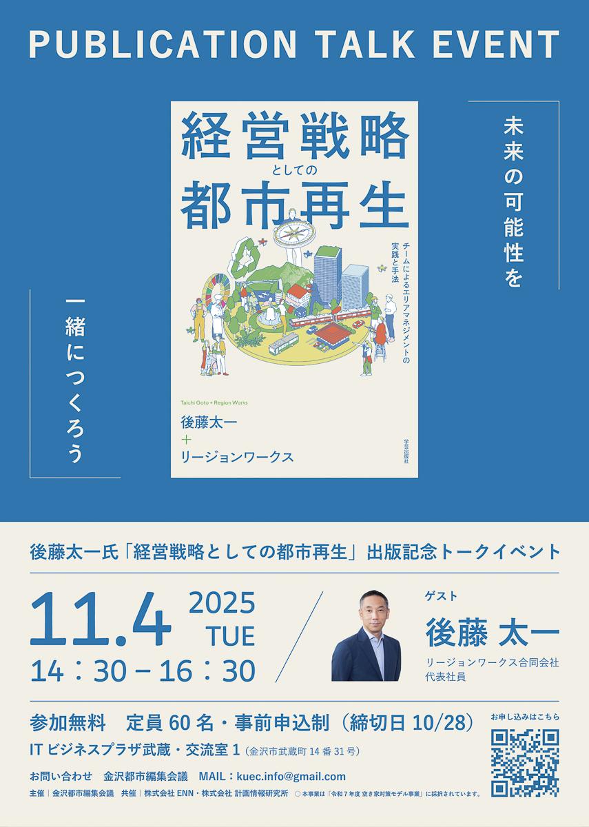 2025年11月4日(火)、後藤太一氏「経営戦略としての都市再生」(学芸出版社)出版記念トー