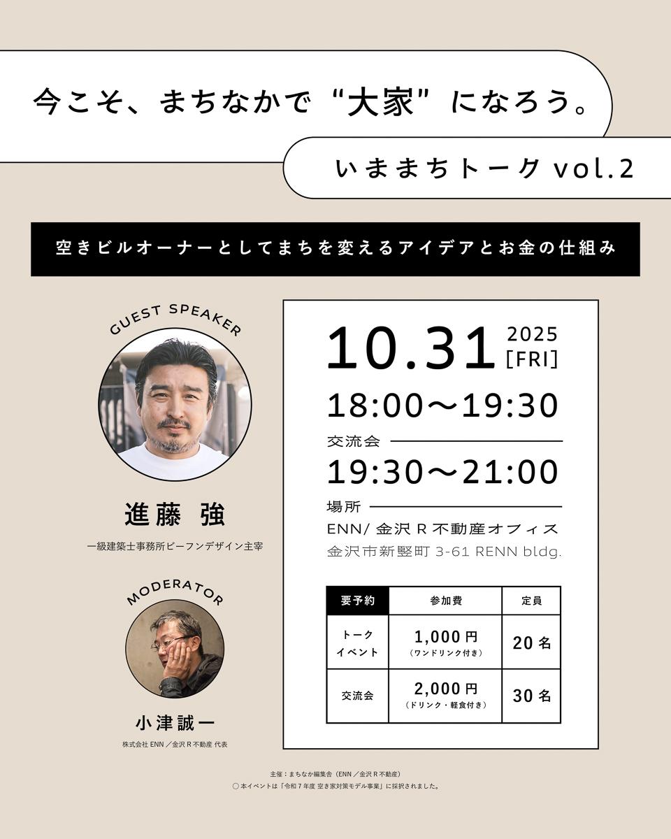 10月31日(金)今こそ、まちなかで“大家”になろう。いままちトークvol.2開催!